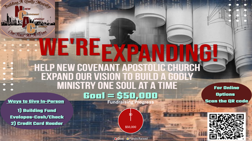 Help New Covenant Apostolic Church expand our vision to build a Godly ministry one soul at a time!